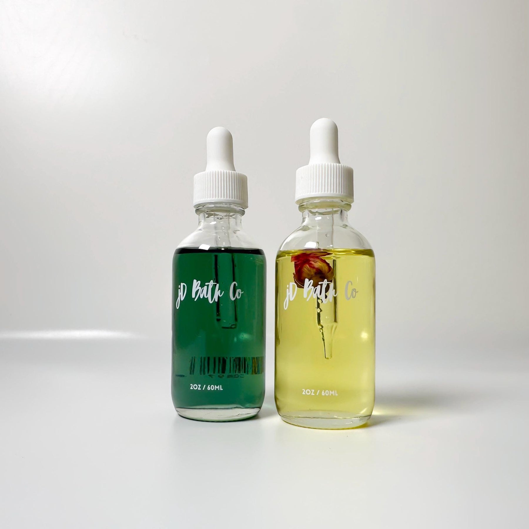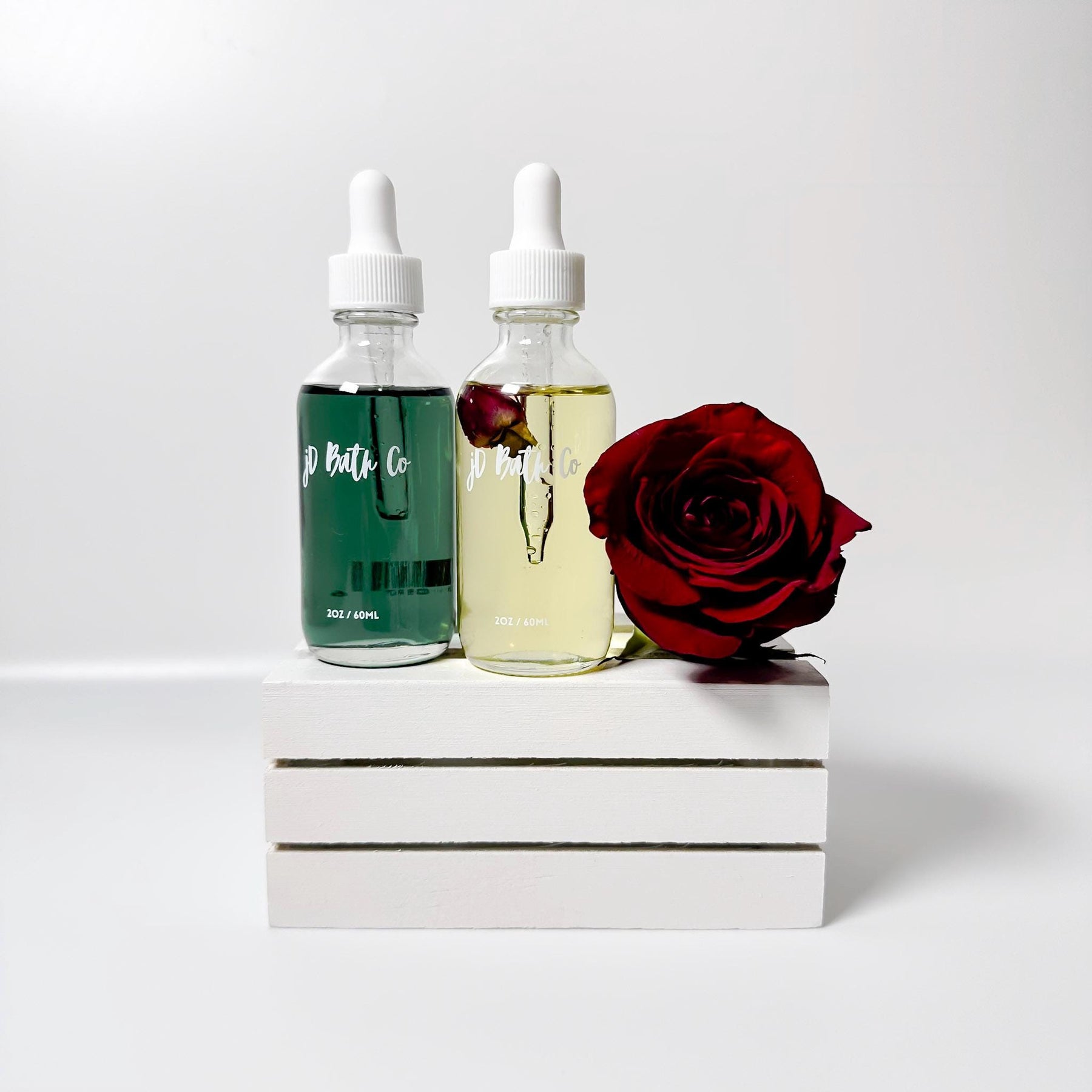 jD Bath Co. Hydrating Oil Duo Rose Glow & Blue Calm Oils