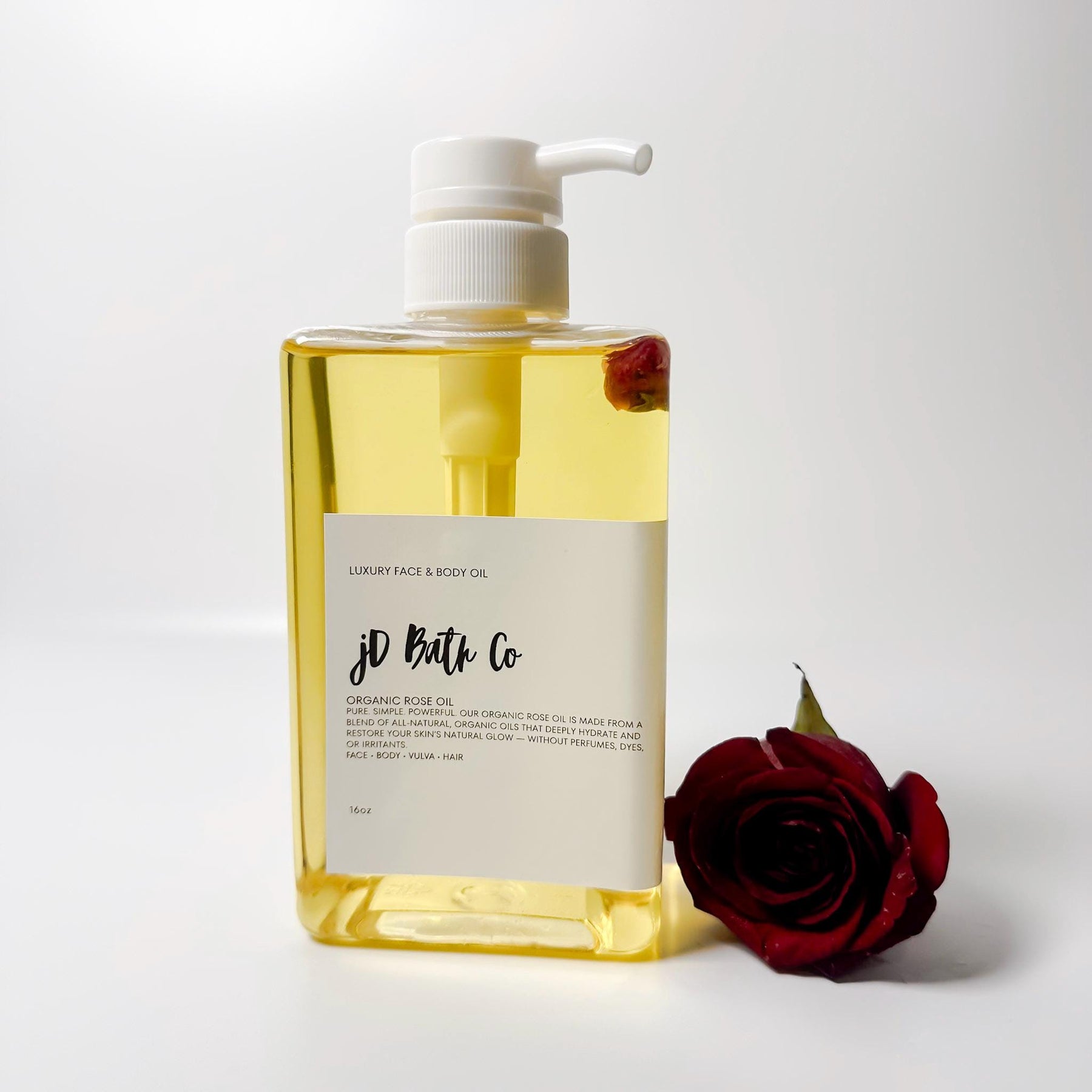 Our 16oz Rose Oil with Organic Rose Buds is a sensual, skin-loving blend crafted to hydrate, soften, and leave your skin glowing like a goddess. Each bottle is infused with real organic rose petals for a luxurious touch that turns your daily routine into a ritual.